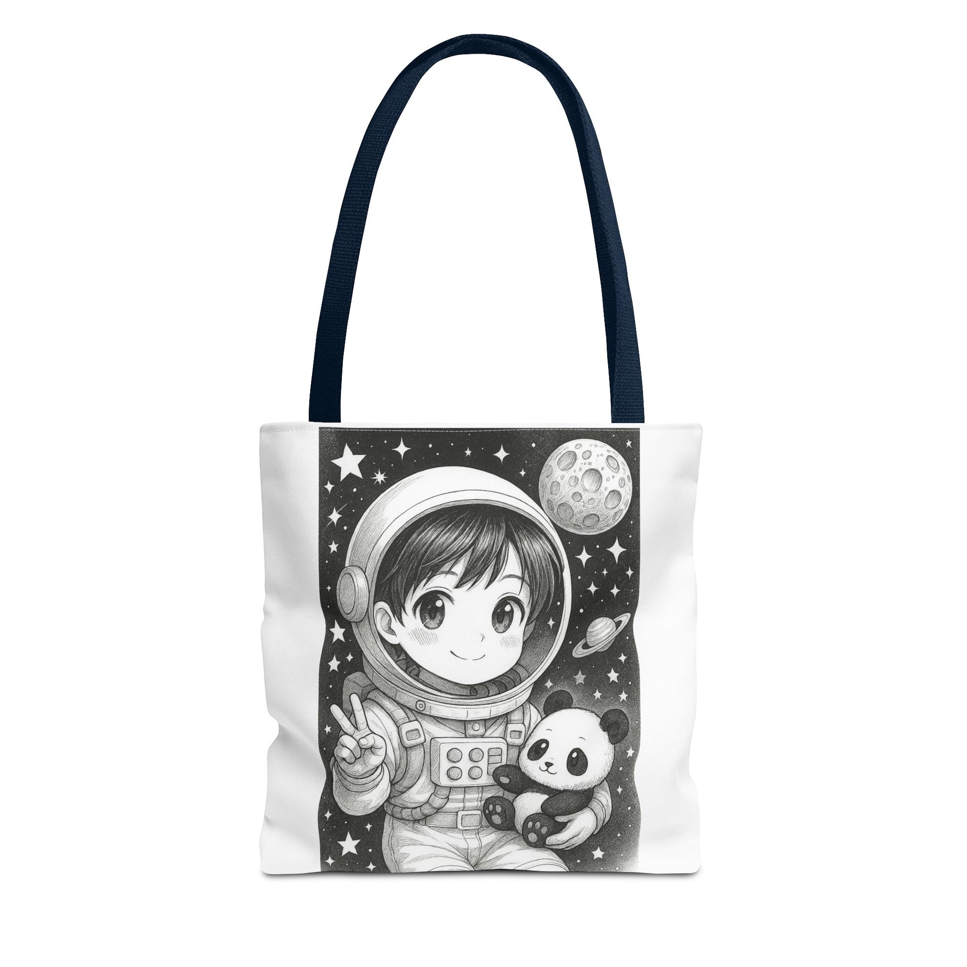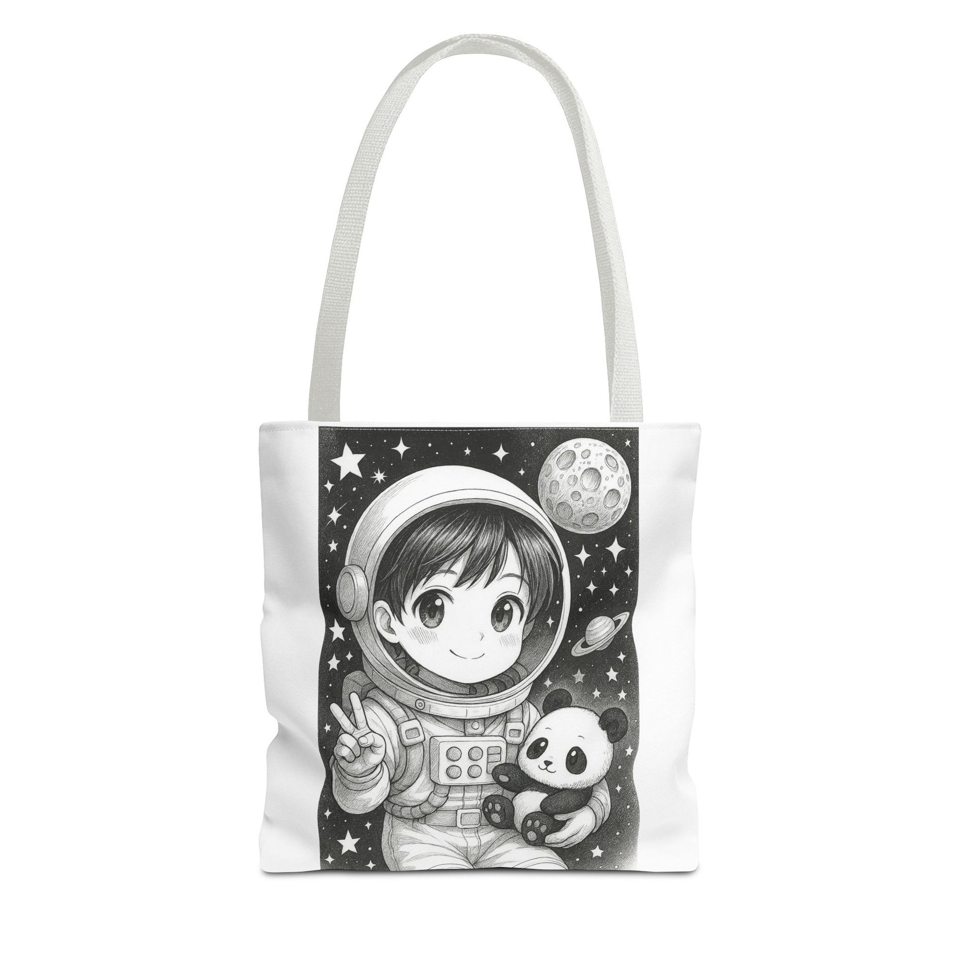 Astronaut Panda Tote Bag, Cute Space-Themed Bag, Eco-Friendly Shopping, Gift for Kids and Teens, Black and White Design, Fun and Functional